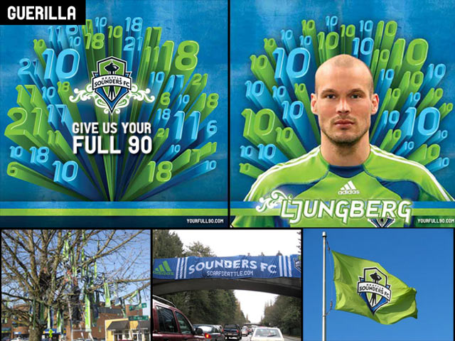 We started by creating a fan-focused campaign that educated locals about soccer and asked them to give as much energy as the players. Our slogan became “Give Us Your Full 90” and fell under the fan anthem of “Scarves Up!” We created billboards, transit, giant scarves, websites to educate fans and even scarfed Seattle with over 1000 scarves. The campaign was wildly successful, and season tickets for the Sounders outsold every other MLS team.